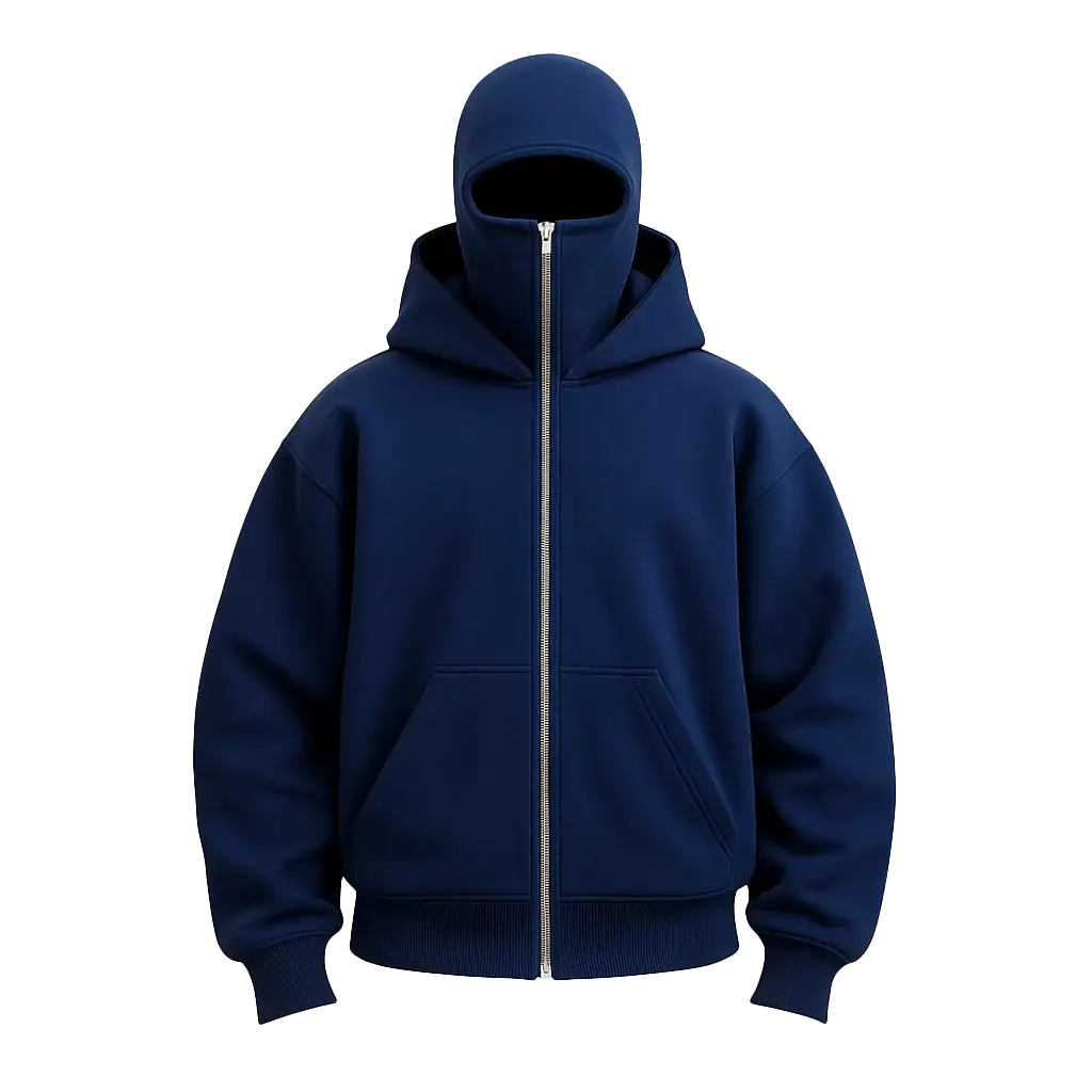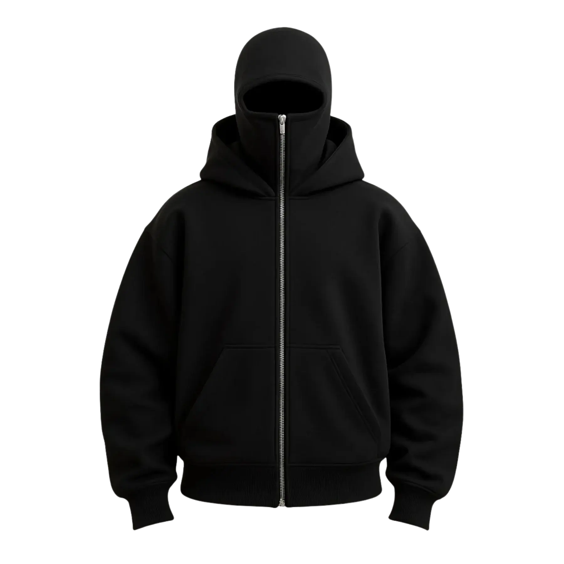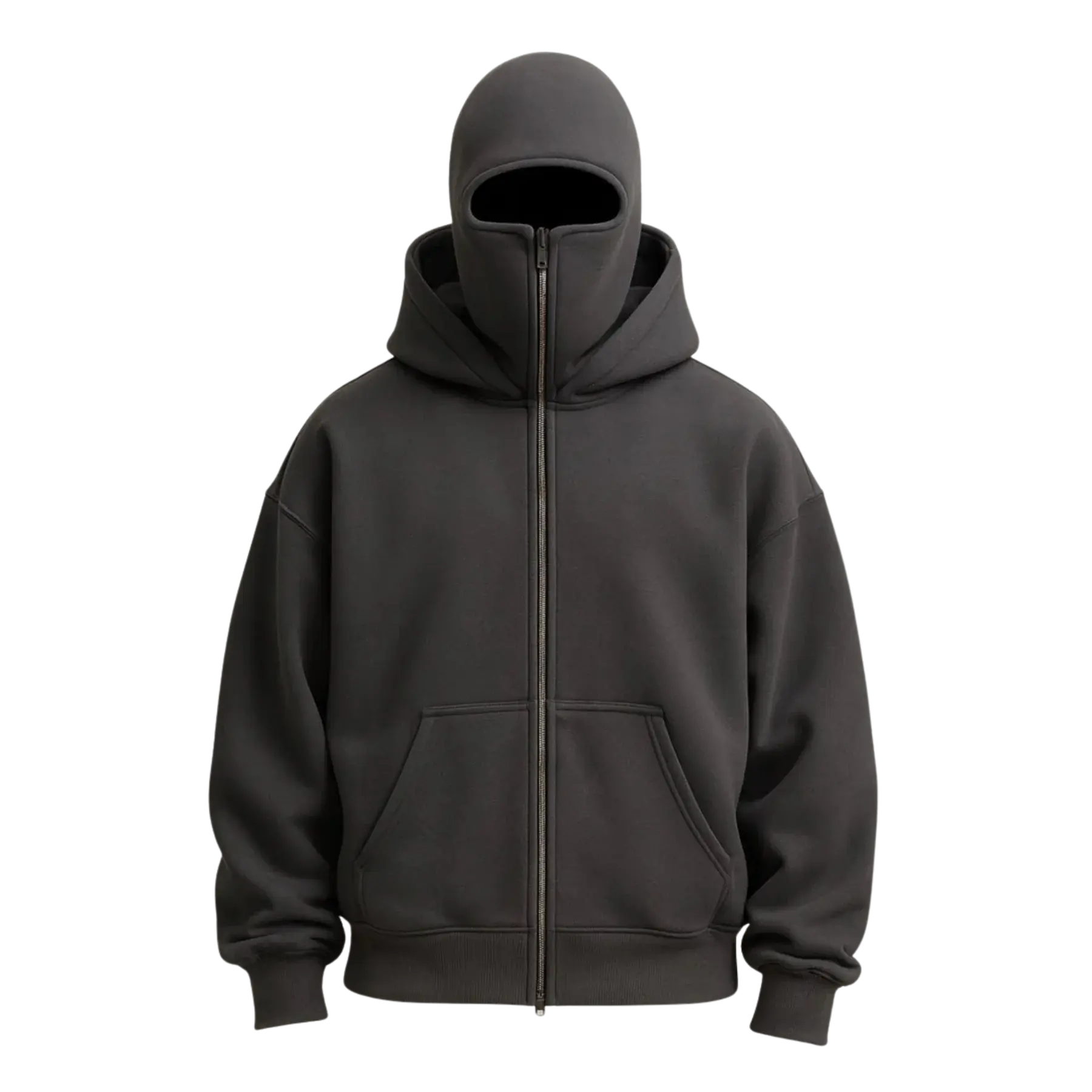 The ultimate hoodie for cold days: with an integrated mask and practical zipper, this zip hoodie protects you from cold and wind. Stylish, comfortable, and perfect for the winter months!