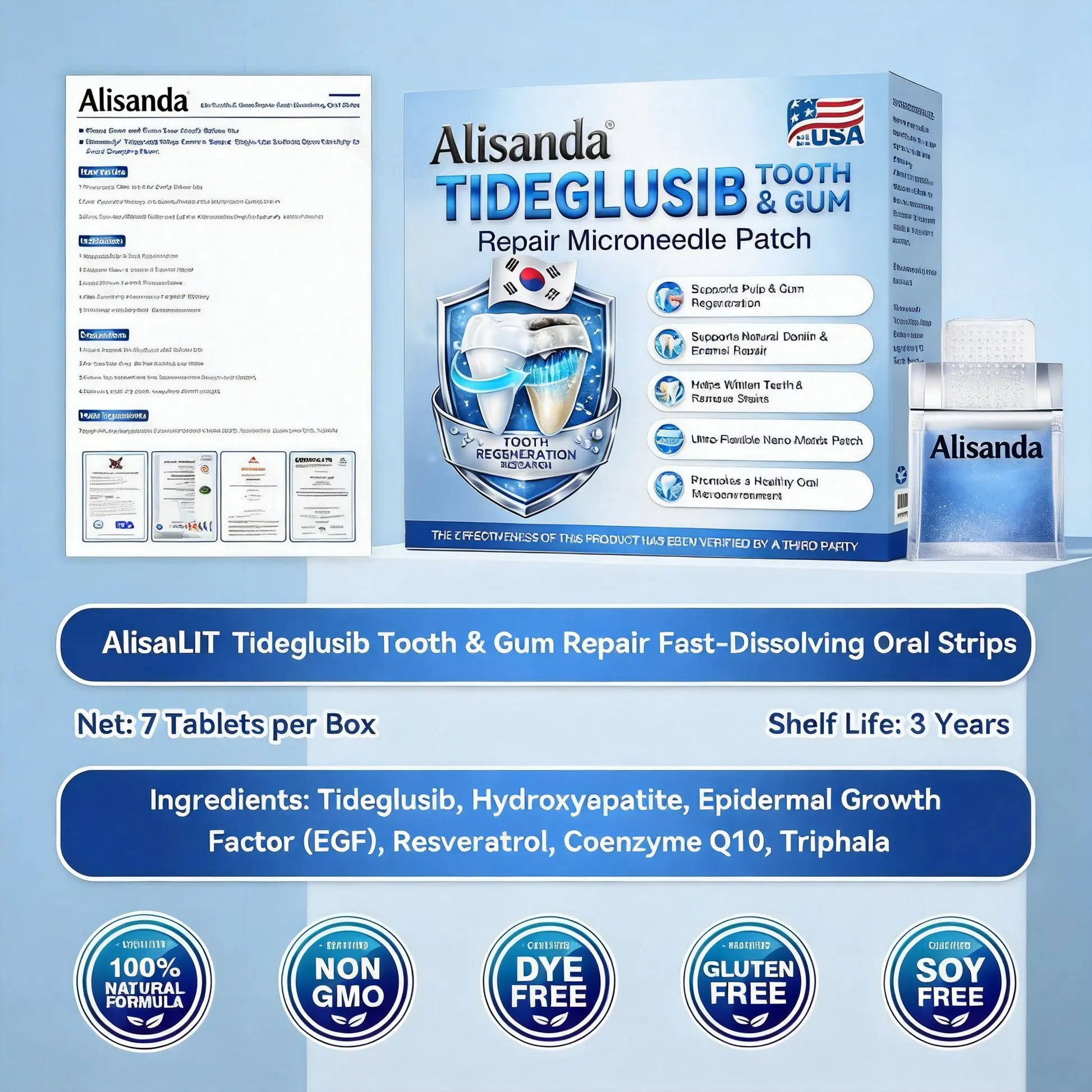 Building on this scientific foundation, Alisanda® has innovatively applied this concept to microneedle fast-dissolving oral strip technology, enabling targeted delivery so that active ingredients can more directly reach both the tooth surface and root area—while avoiding the discomfort and risks associated with traditional invasive procedures. This approach is not only gentler and more convenient, but also reflects the future direction of oral care: a shift from passive maintenance to active repair. For individuals looking to improve overall tooth condition, reduce stain buildup, and support long-term oral health through daily care, this represents a highly promising option.